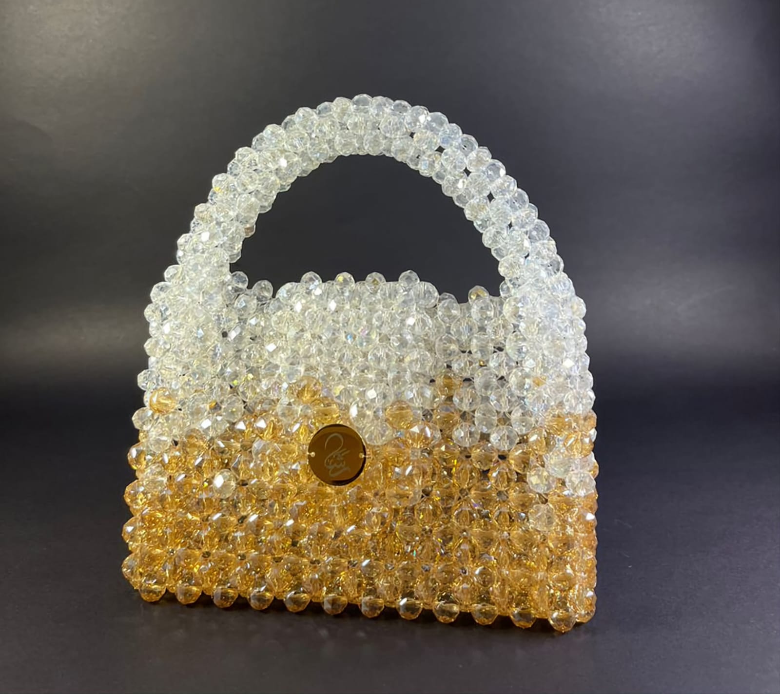 حقيبة مصنوعة يدوياً باستخدام كريستالات شفافة وذهبية، تتميز بتدرجات ألوان أنيقة مستوحاة من جمال الغروب، مما يضفي عليها لمسة من الفخامة والرقي. الحقيبة مصنوعة يدوياً بالكامل مما يجعل كل قطعة فريدة ولا مثيل لها، مع استخدام كريستالات شفافة وذهبية عالية الجودة لإبراز التصميم الراقي. يعكس التصميم والألوان الذهبي والشفاف شخصية حيوية ومفعمة بالثقة، حيث يرمز اللون الذهبي إلى الفخامة والثراء، بينما يعزز اللون الشفاف من شعور الصفاء والنقاء، مما يجعل الحقيبة مثالية للمناسبات الخاصة وإبراز الأناقة.المميزات الأكثر أهمية: